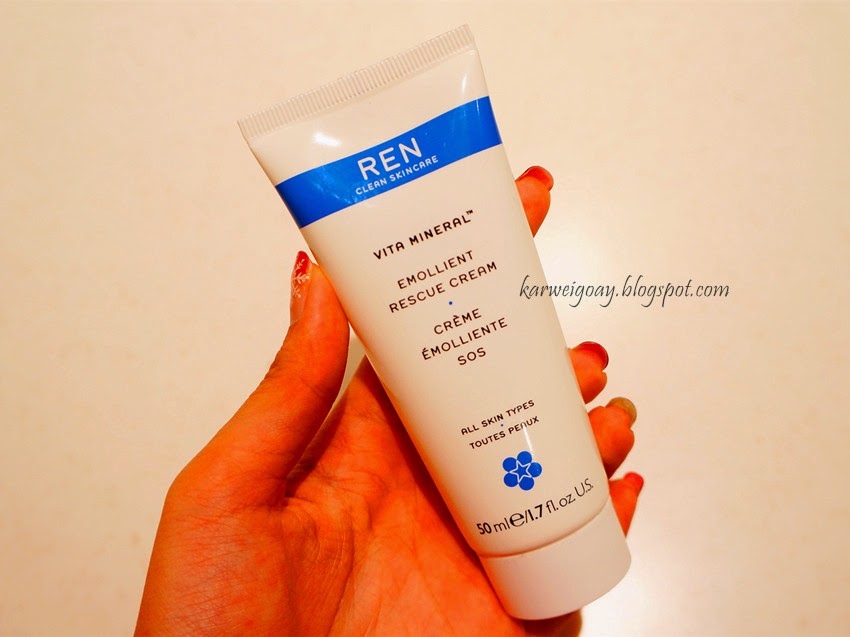 One girl then approach me and asked if I wanna get my skin tested for free, considering how much longer do I have to wait to get into the departure hall, I went for it. The test showed that my skin is super dehydrated from depth within and that time I actually had quite a lot of breakouts as well as some itchy red spots caused by sensitivity. Without doubt, the girl then tried to talk me into purchasing their products (arboh why they give u free test hhshaha) saying it would help my skin a lot bla bla bla. I didn't listen to her at all actually HAHA. Cos first, I've never heard of this brand called Ren. Second, I am the kind of person that does a lot of researched before getting new skin care's. Plus their products cost like hundred smtg, I was like NOOOOO, jie is poor. So I refused. She then said nvm, handed me a sample size of their Vita Mineral Rescue Cream, said I must quickly get rid of those itchy & sensitive red spots on my face before they get too serious. She did look as if she genuinely wanted to help me.